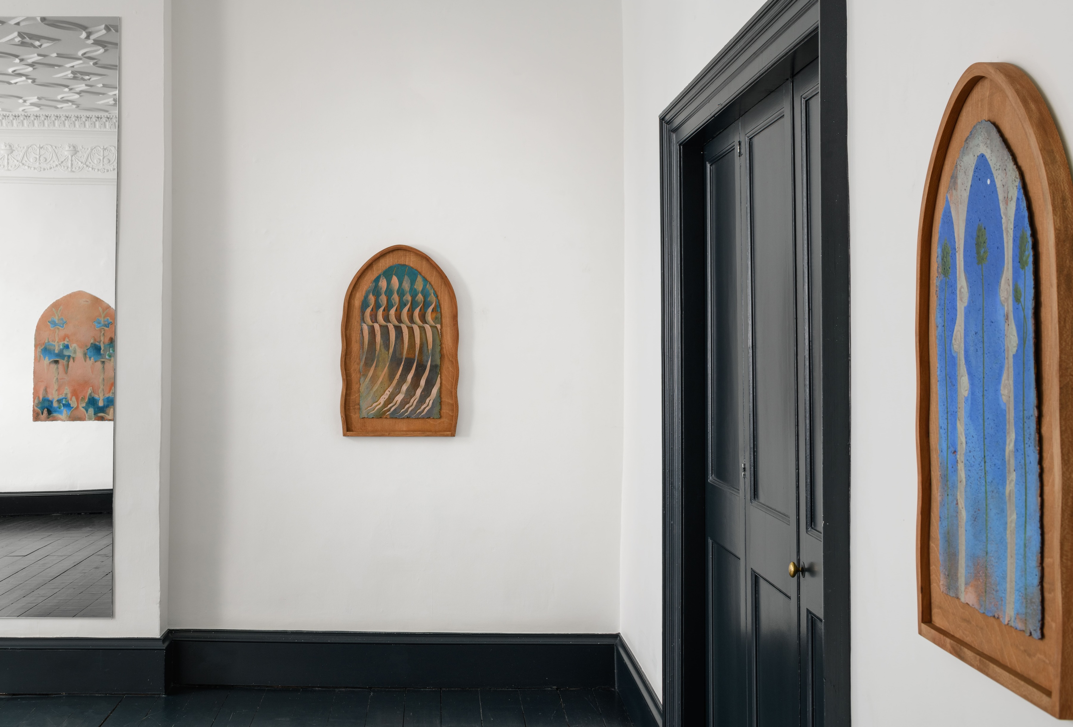 Washed Over My Ears, oil on handmade paper in a London Plane frame, 84.6 x 54.5 x 2.8 cm