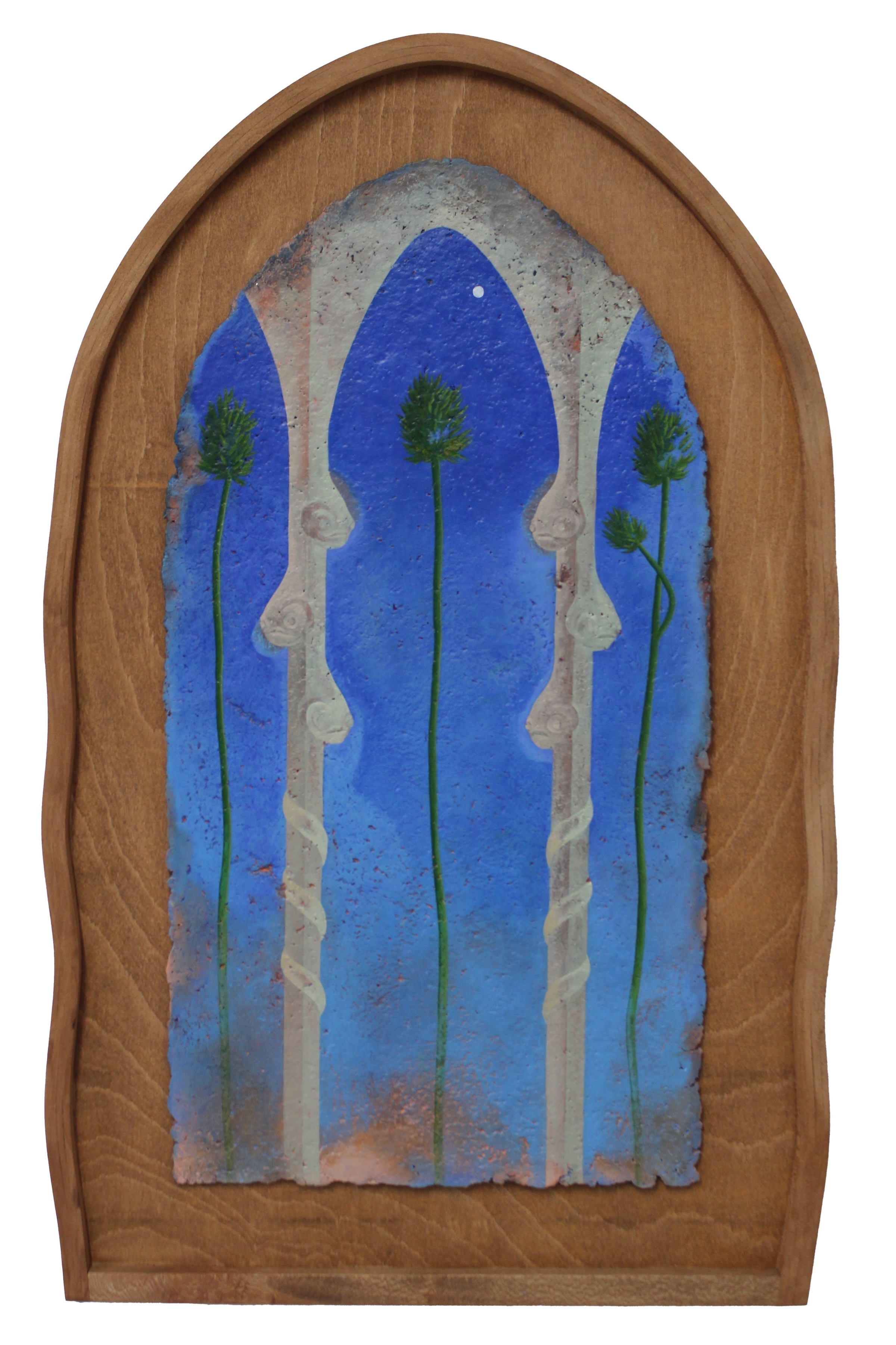 The Calling, oil on handmade paper in London Plane frame, 84.6 x 54.5 x 2.8 cm
