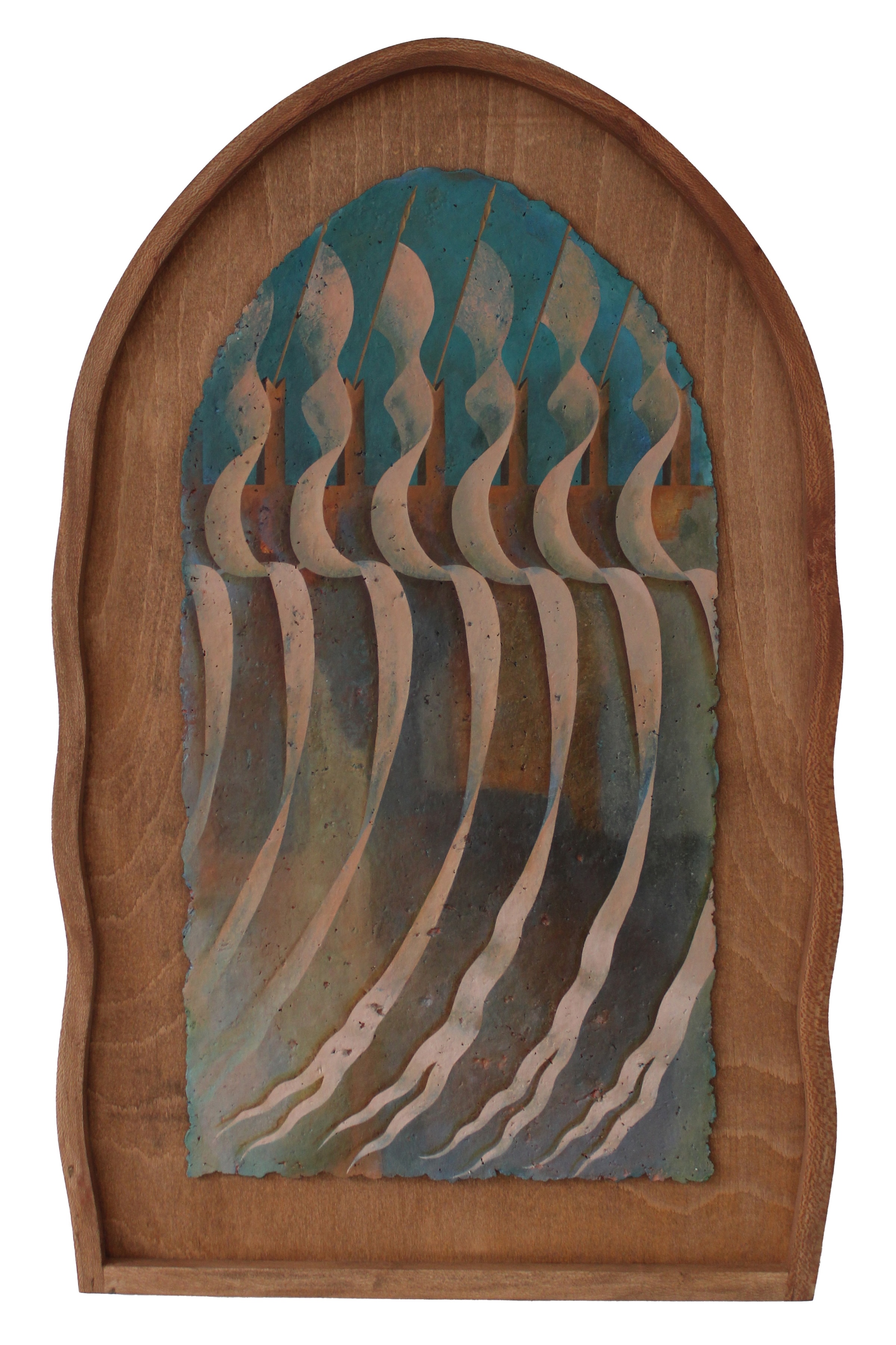 Turn Towards The Waves, oil on handmade paper in London Plane frame, 84.6 x 54.5 x 2.8 cm